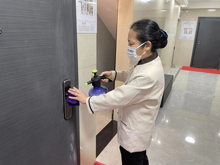 如何确保复工后的疫情防控不出纰漏是重中之重,中房集团荆门公司积极响应相关政策,认真组织防疫各项工作,明确上班到岗前的细致要求,设立疫情防控小组,确保复工、疫情防控两不误。加强员工健康监测,在进入营销中心前,所有员工接受体温测量、出示健康码、消毒并登记,同时每天对在岗保安、客服、保洁、置业顾问等进行早晚两次的体温检查,督促在岗人员佩戴好口罩及手套。每日定时定量使用医用酒精、84消毒液等消毒剂,对吧台、会客厅、楼道、扶手、办公室、卫生间等公共区域及样板房进行重点清洁和消杀。在出入口设立防疫登记点,严密防控、对所有出入人员进行体温检测、查验核酸,确保符合标准方可进入,为到访客户提供既安心又安全的环境。