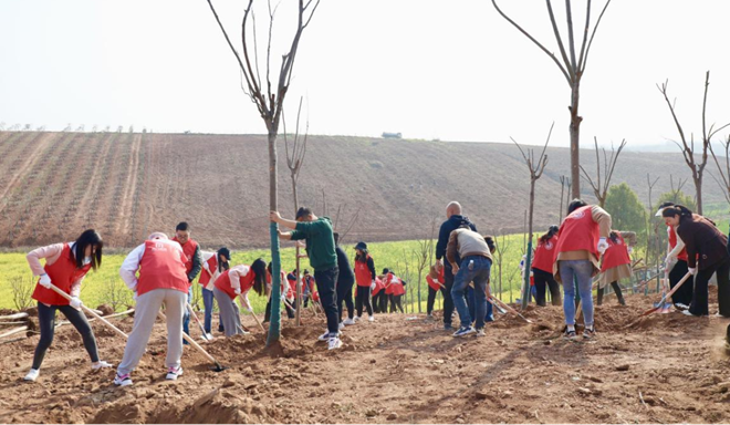 春风拂面,新绿初绽,荆门城控集团党建林里一派热火朝天的景象。大家分工协作,挥锹抡镐、放苗扶正、培土夯实,用“党建红”种下“希望绿”。经过一番齐心协力的劳动,40多棵新栽下的树苗整齐划一、迎风挺立,传递着春的生机与活力。