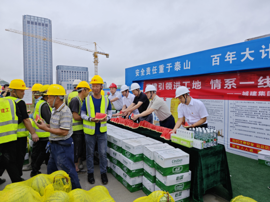 慰问组一行为坚守在岗位上的员工发放了风油精、矿泉水、西瓜等高温慰问品,并代表城建集团党委向高温下的工作者表示感谢和关怀,叮嘱大家在加快推进项目进度的同时,也要确保身体健康。同时,要求工地负责人高度重视高温季节安全生产工作,合理安排现场作业时间,确保工程按期保质完成。