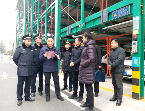 1月21日上午,市城管执法委副局长张鹏带队到停车场公司雨霖路机械停车楼开展节前安全生产检查。市城投公司党委委员、副总经理徐敏及停车场公司相关人员陪同检查。