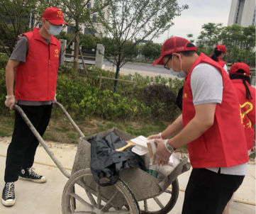 活动现场,20多名志愿者身穿志愿者红色马甲,头戴志愿者红色帽子,他们高举司旗和志愿者旗帜,现场犹如一片片火红的云彩镶嵌在场馆周围,这一抹“志愿红”和志愿者们的劳动热情把现场妆点得格外靓丽多彩。志愿者们手拿钳子、垃圾袋,推着两轮斗车,捡拾绿化带中的白色垃圾、搬运现场废弃建筑材料。他们分为两组,分工明确,密切协作,沿着场馆周围地毯式搜寻前进,不放过任何一处死角。志愿者们不怕脏、不怕累,发扬吃苦耐劳精神,个个干得欢快自如,热情高涨,劳动现场不时传来一阵阵欢声笑语。经过两个小时的奋战,场馆外围公共区域的杂物和绿化带中的白色垃圾被大家清理得干干净净,整个项目现场干净整洁,给人焕然一新的感觉。